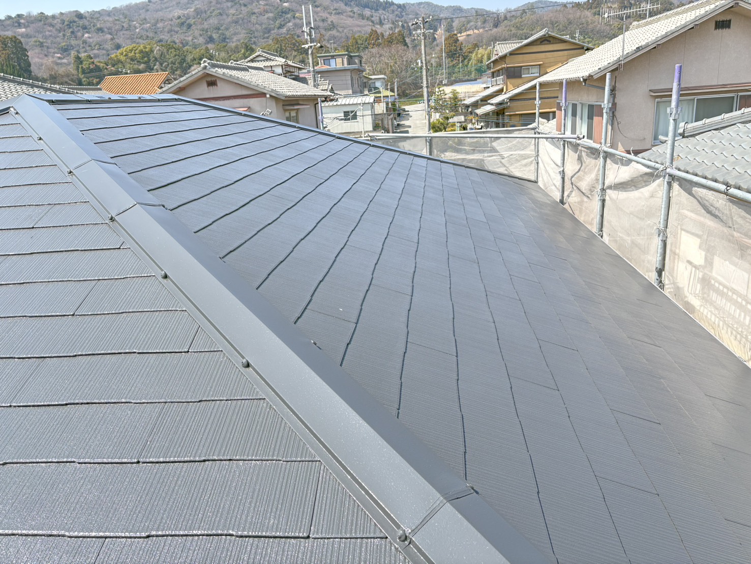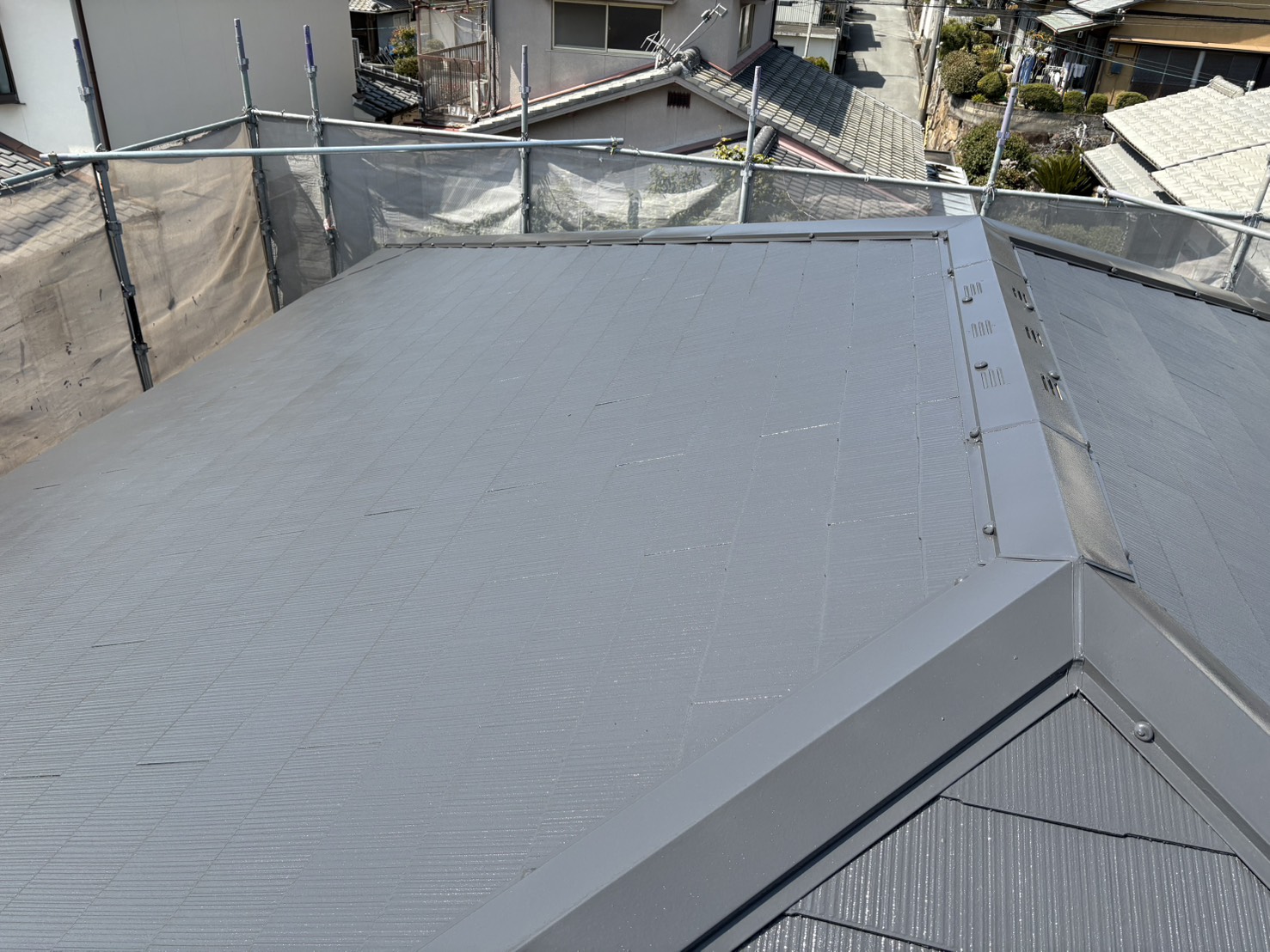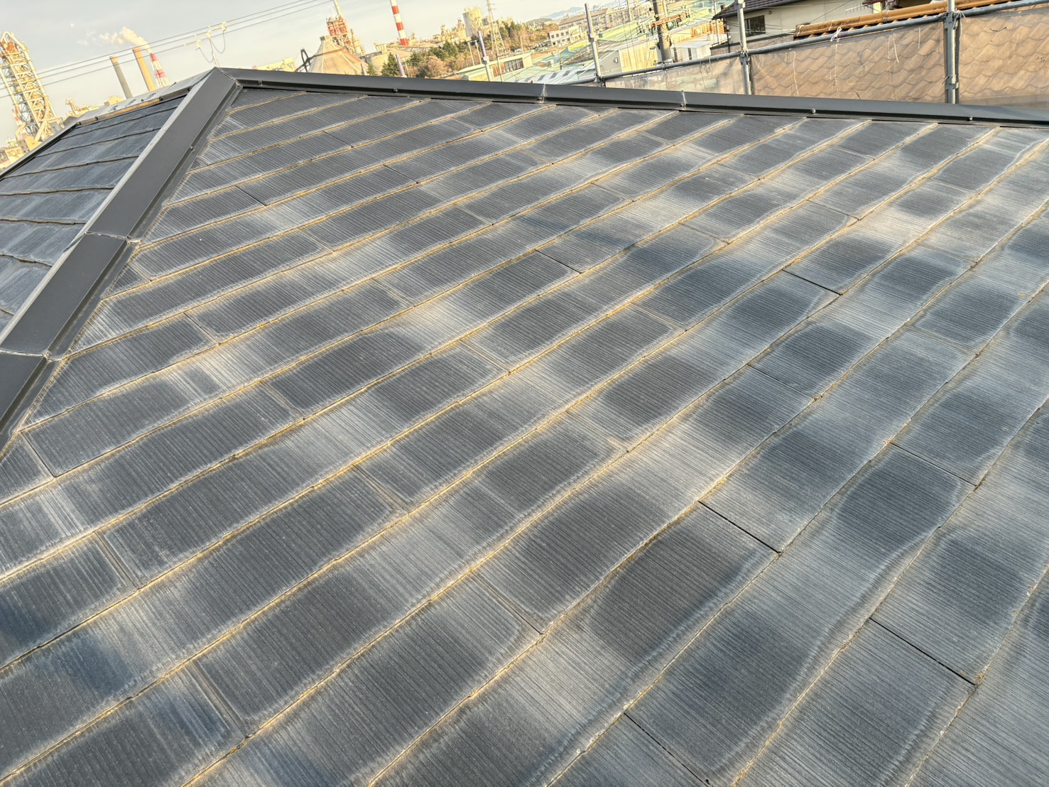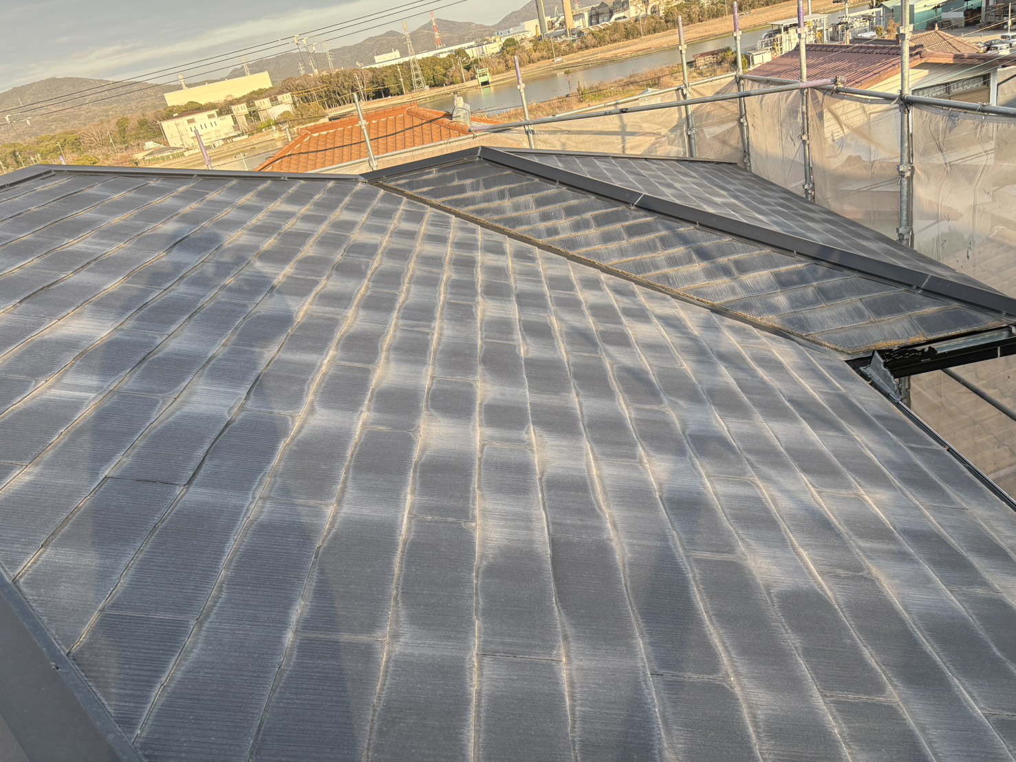 色褪せていた屋根が、新築時のような美しく深みのある艶と、確かな防水性を取り戻しました。